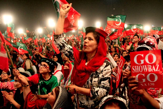 Supporters of Khan's Pakistan Tehreek-e-Insaf (PTI) at an election rally in Lahore (Reuters)
