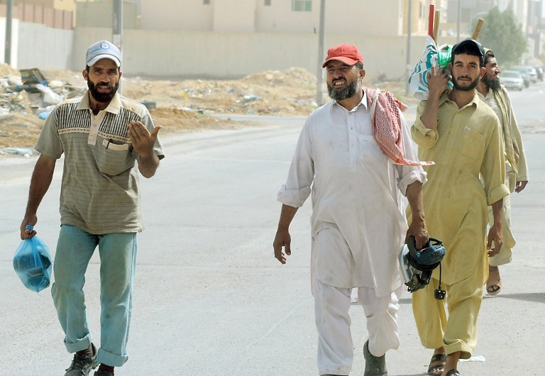 Foreign labourers walk in a street in the Saudi capital Riyadh (AFP)