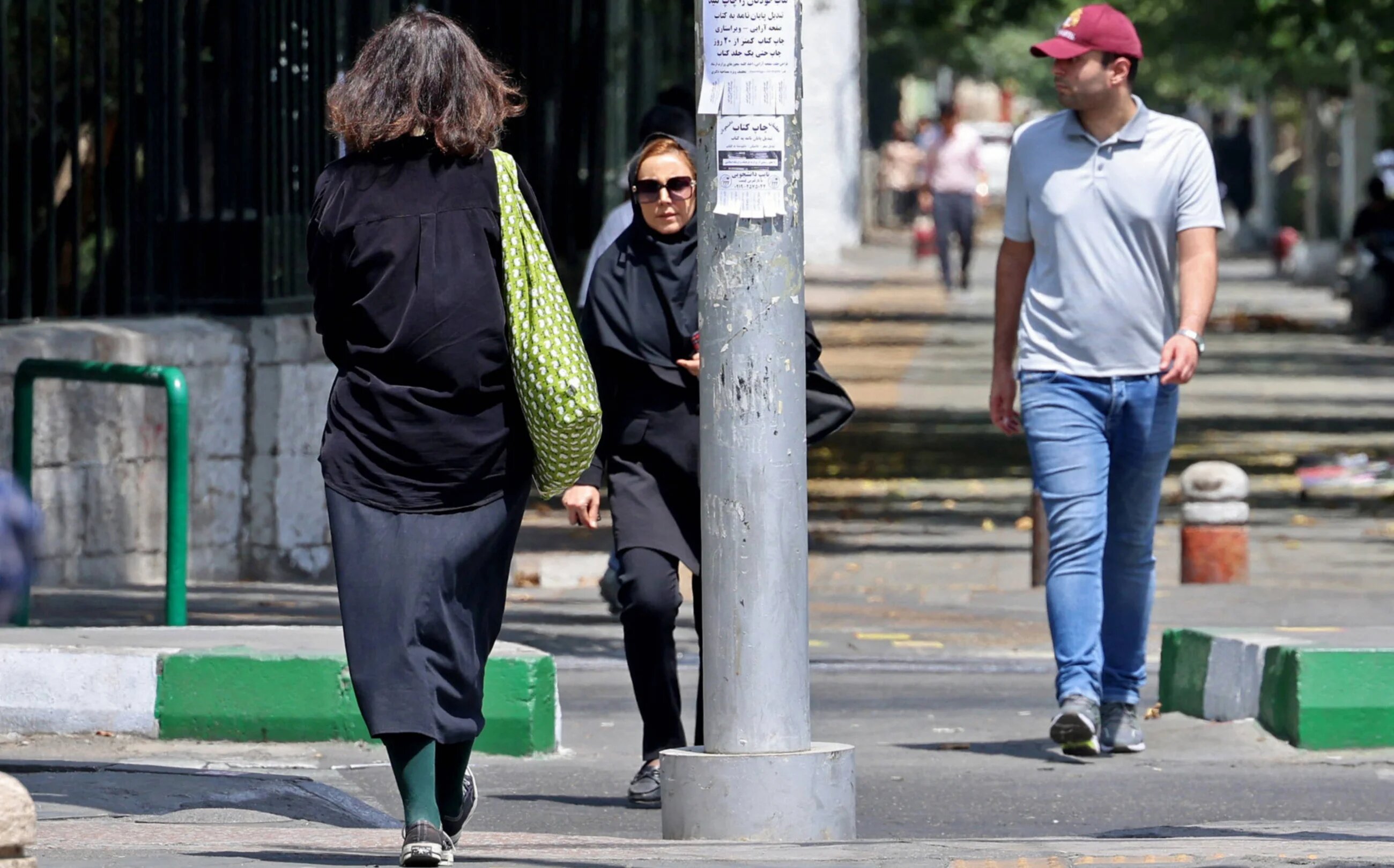 Iranian women walk in Tehran as the police relaunched patrols to catch women leaving their hair uncovered in public, on 18 July 2023 (AFP)