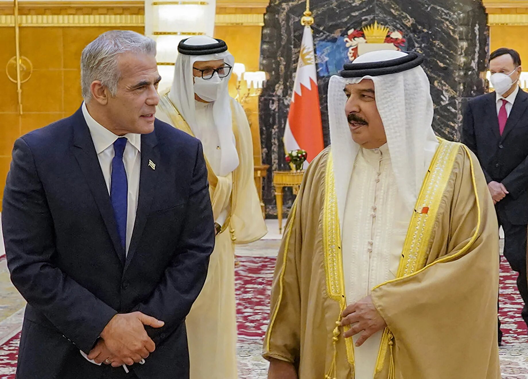 Lapid met Bahrain's king and crown prince and Prime Minister Salman bin Hamad Al Khalifa on Thursday, before cutting the ribbon at the Israeli embassy in Manama.