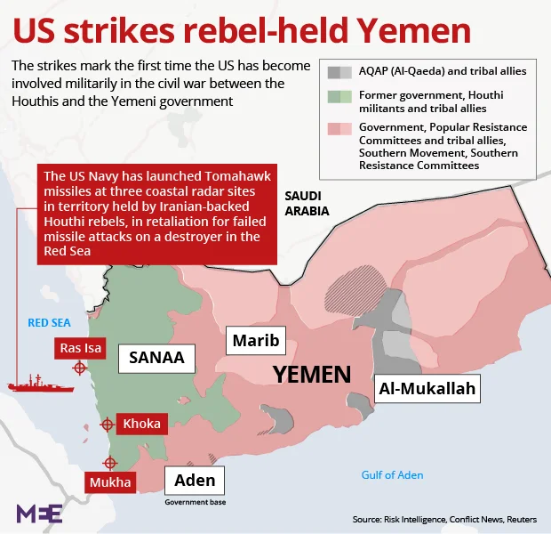 The announcement comes hours after the US said it had fired cruise missiles at three Houthi-contolled radar stations after anti-ship missiles were fired at a US Navy destroyer.