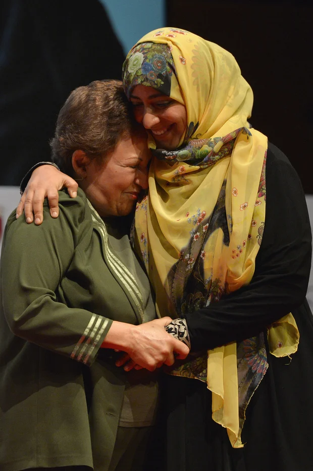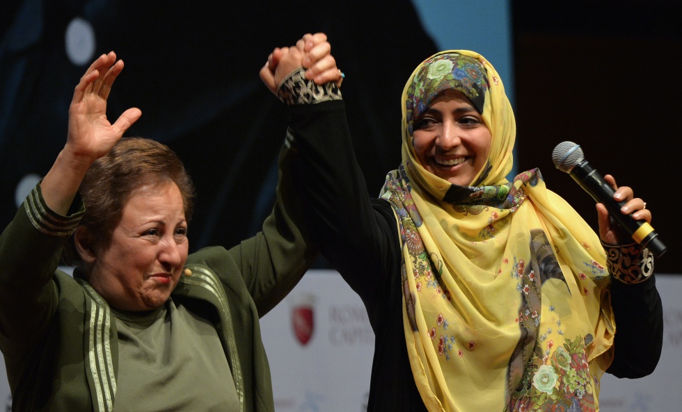 Yemeni Tawakkol Karman and Iranian Shirin Ebadi were attending the 14th World Summit of Nobel Peace Laureates in Rome held between 12 and 14 of December.