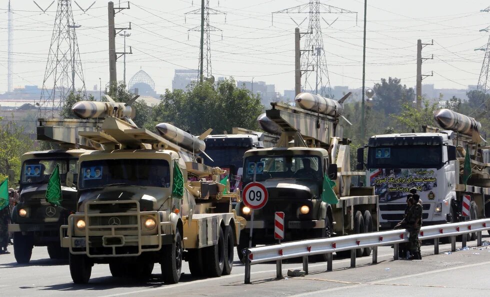 Iranian army trucks carry missiles during the annual military parade marking the anniversary of the start of Iran's 1980-1988 war with Iraq (AFP)