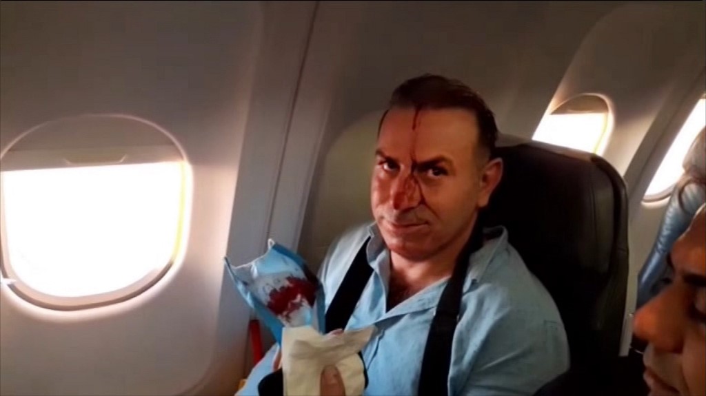 Video posted online by Iranian state TV showed passengers screaming inside the airliner, with one showing the camera his bloodied face mask.