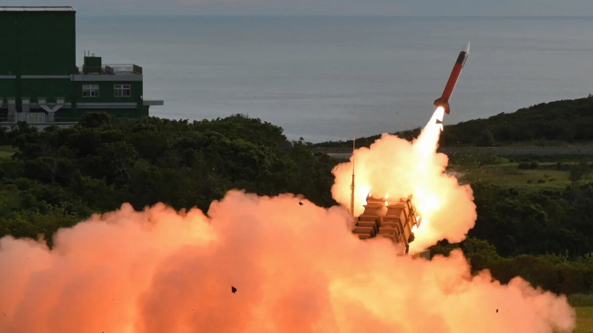 A US-made Patriot surface-to-air missile is launched during a live fire exercise at Chiupeng missile base in Pingtung county, Taiwan, on 20 August 2024 (Sam Yeh/AFP)