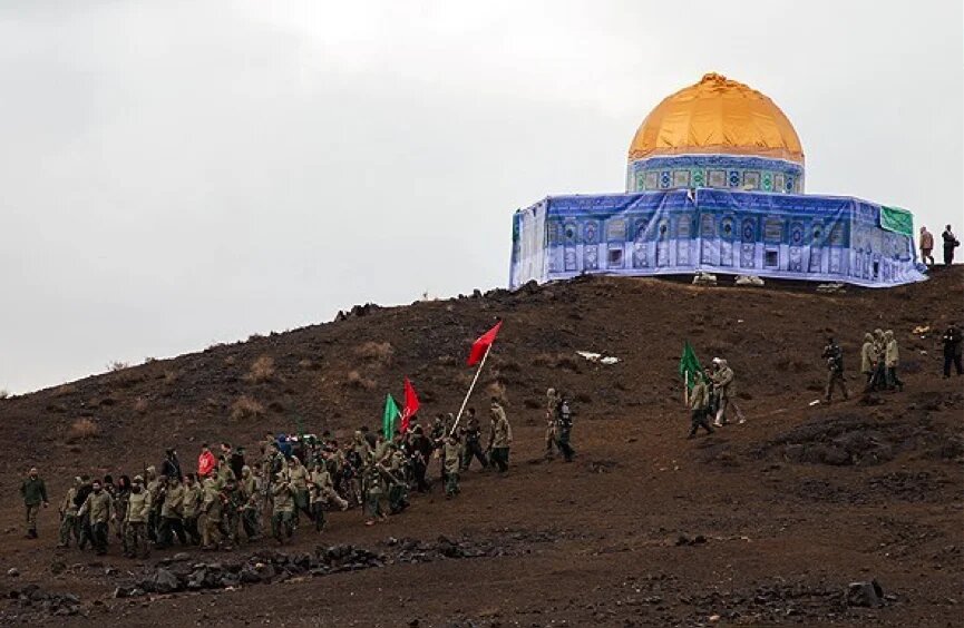 Iranian volunteer militia forces have staged two days of military drills near the shrine city of Qom, culminating with a march to a replica of Jerusalem’s holy al-Aqsa Mosque on Friday.