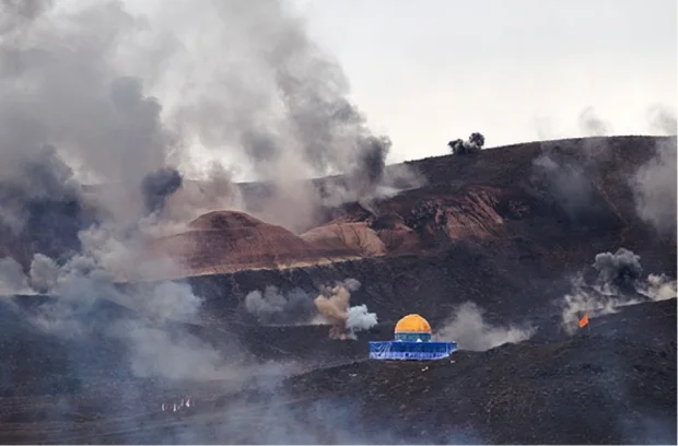 Iranian militia volunteers stage capture of replica al-Aqsa Mosque