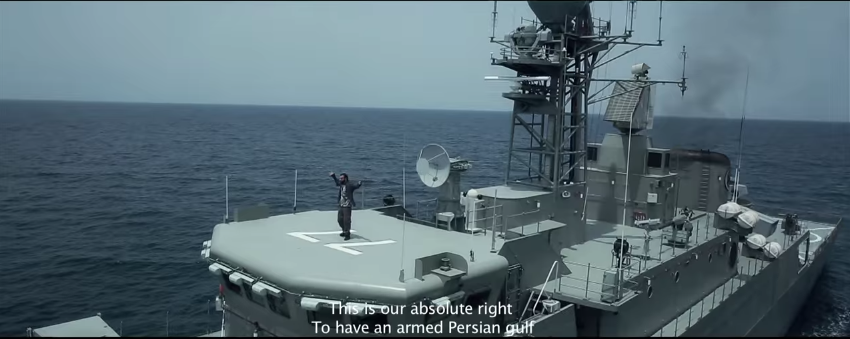 Tataloo, known for his fusion of rap, hip hop and R&B, is filmed singing in front of a solemn-looking Iranian unit. As he stands aboard the Iranian navy warship Damavand, Tataloo sings the provocative chorus amidst themes linked to nationalism, Iran’s nuclear programme and the right to defend itself. “Having an armed Persian Gulf is our absolute right,” he chants.