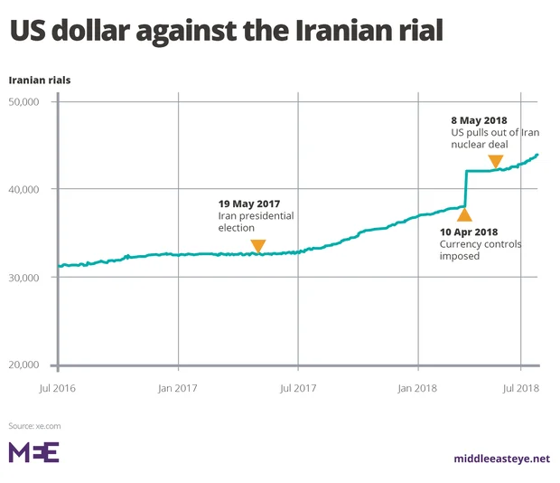 Markets were already skittish as Donald Trump signalled he wanted to pull out of the Iran nuclear deal, with the re-imposition of sanctions. The past year has seen protests and strikes.