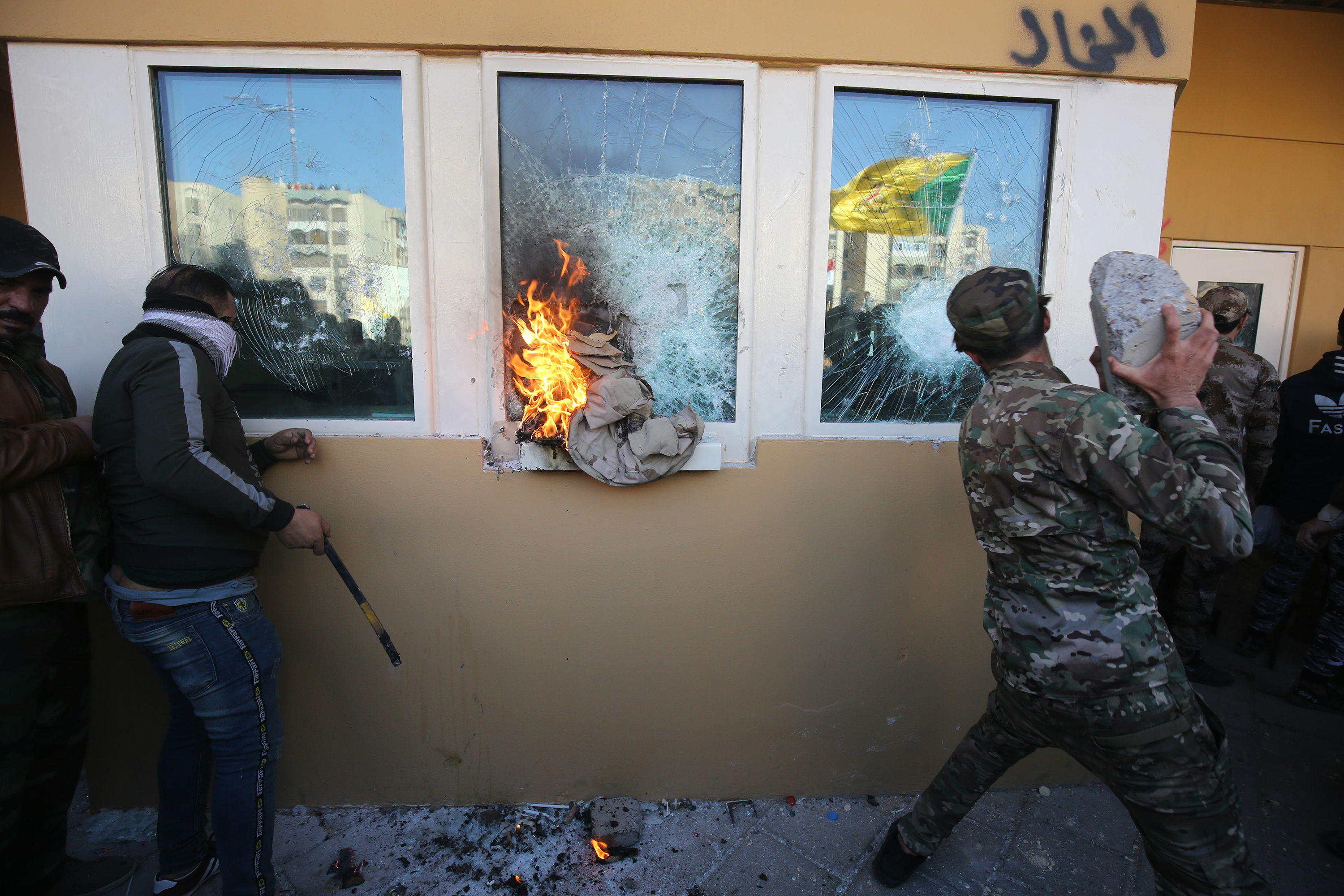 Thousands of protesters attacked the US embassy in the Iraqi capital on Tuesday in anger at American air strikes in Iraq and Syria that killed more than two dozen Iran-backed militia fighters at the weekend.