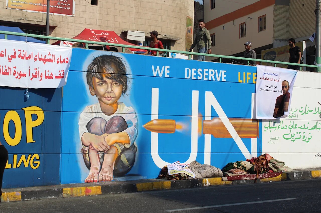 Protests which began on 1 October paused for the religious holiday of Arbaeen before exploding again on 25 October, a date which has gone down in legend for protesters (MEE/Alex MacDonald)