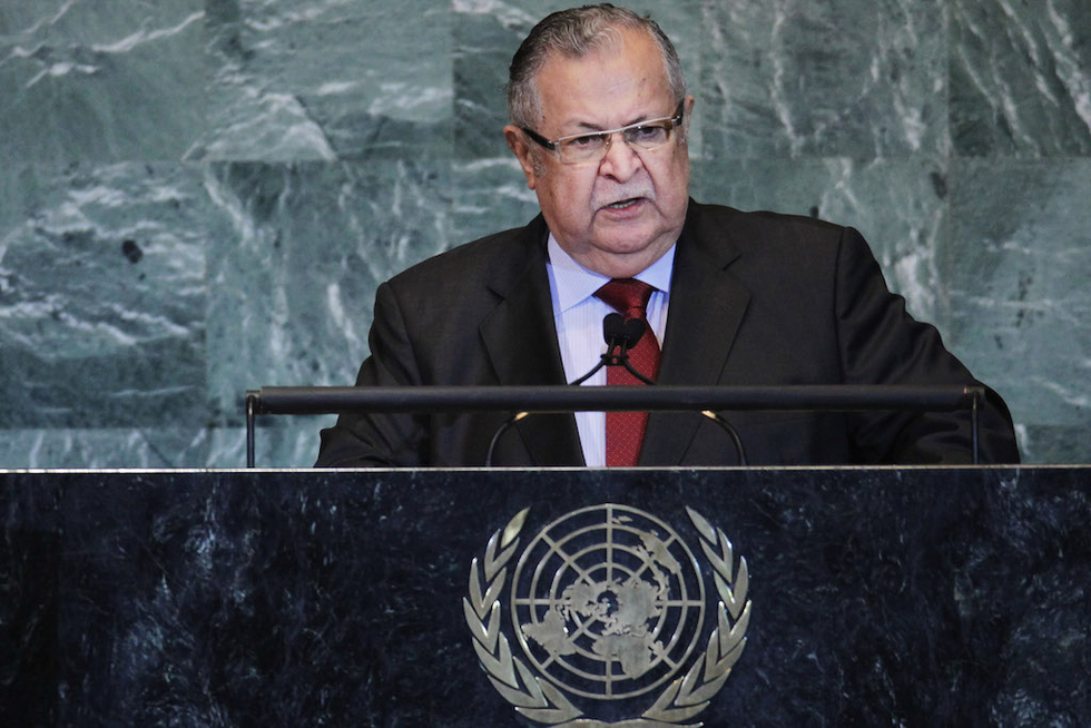 Jalal Talabani speaks during the United Nations General Assembly on September 23, 2011 in New York City (AFP)