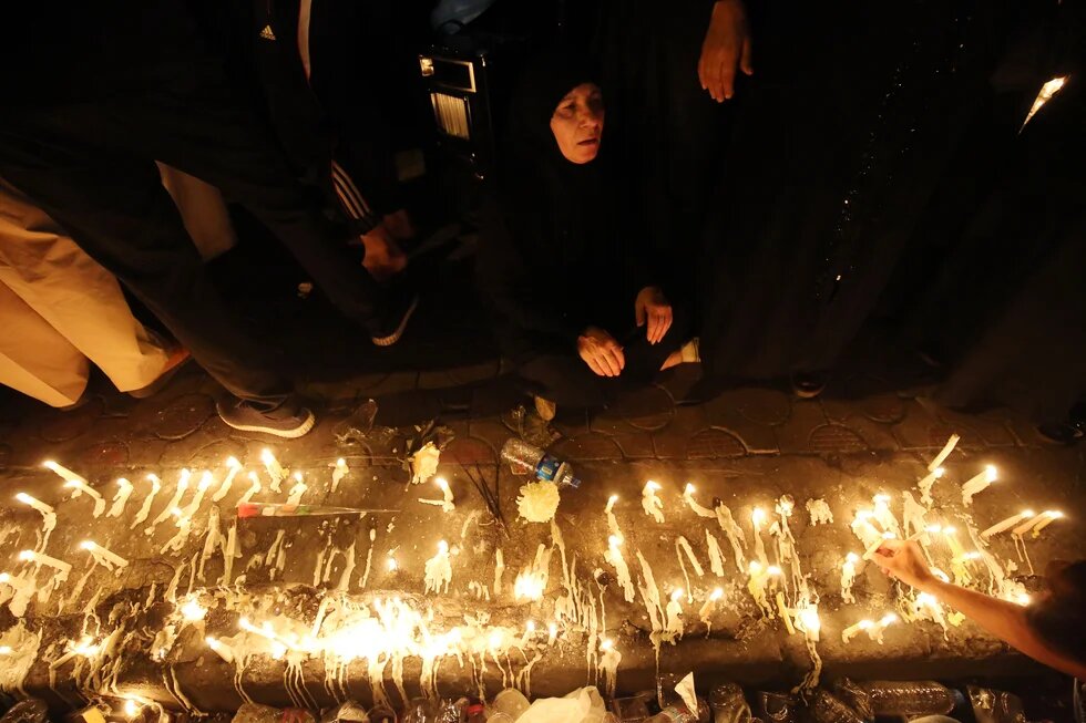 Iraqis light candles on 5 July 2016 at the site of a suicide car bomb attack that took place early on 3 July in Baghdad's Karrada neighbourhood killing at least 213 people. (AFP)