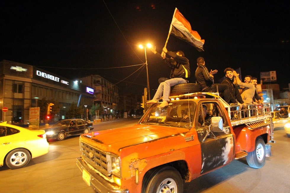 "Long live Iraq!", one young man shouted while hanging out the window of a passing car early on Sunday.