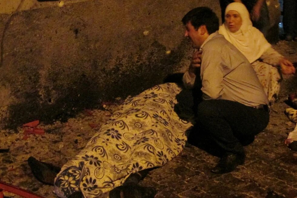 Man, woman mourn victim of blast attacking wedding celebration in Gaziantep, southern Turkey (Reuters)
