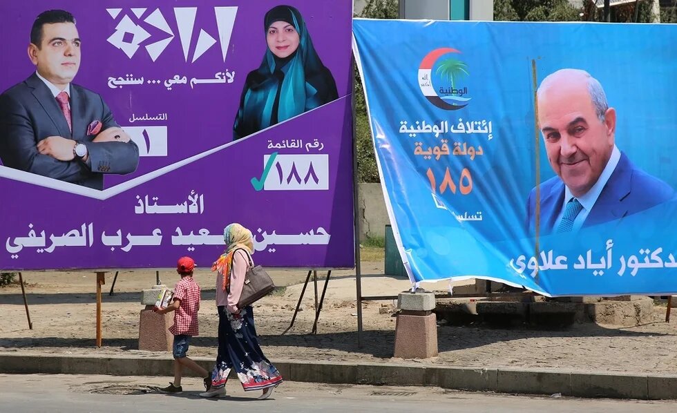 Iraqis walk past campaign posters in Baghdad in April. Islamic state says all voters are targets (AFP)