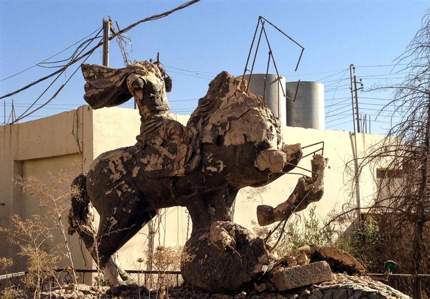 The grounds of Al-Tahira church, the largest place of worship in the town, were used as a shooting range for trainee IS militants, who fired endless rounds into religious statues and mannequins, lined up in front of one of the church’s historic chapels and reducing one of its walls to rubble.