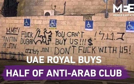 Some Beitar fans expressed their anger over the deal, spraying graffiti on the outer wall of Beitar Jerusalem's stadium: "Muhammad is Dead", "Death to Arabs", "Fuck Dubai", and "You can't buy us!!! $ Don't fuck with us!"