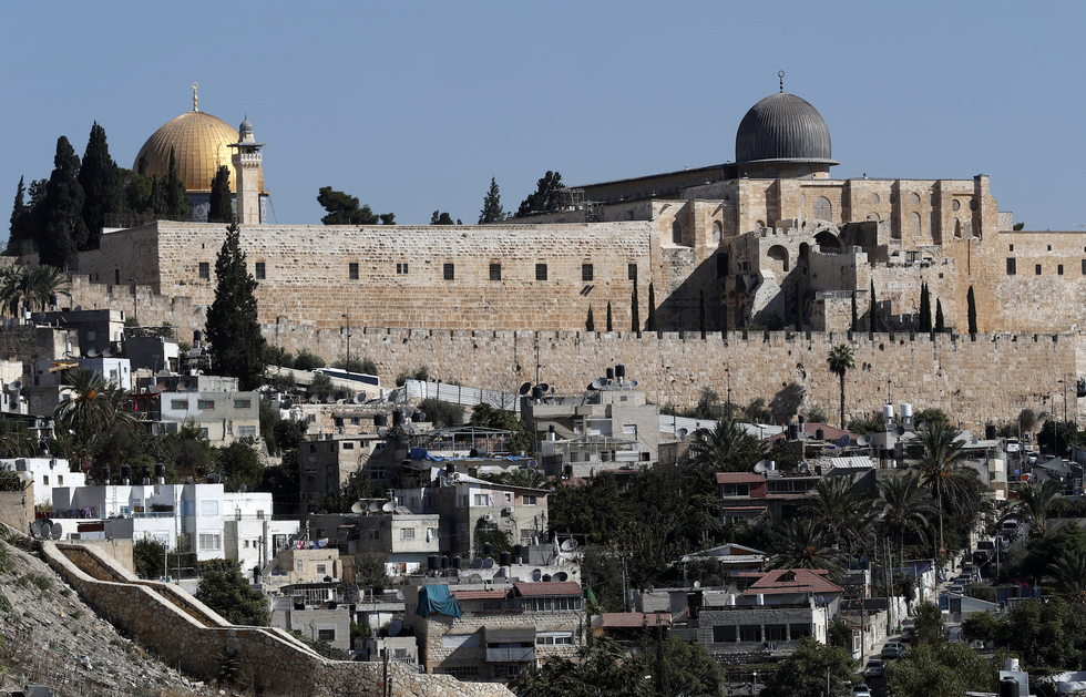 Picture taken on 19 September shows part of Old City of Jerusalem with the Dome of Rock (left) and the dome of Al-Aqsa mosque. (AFP)