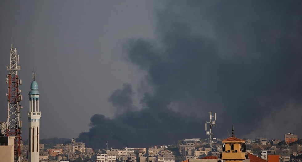 Smoke rises over buildings in Gaza after an Israeli air strike on 29 May (Reuters)