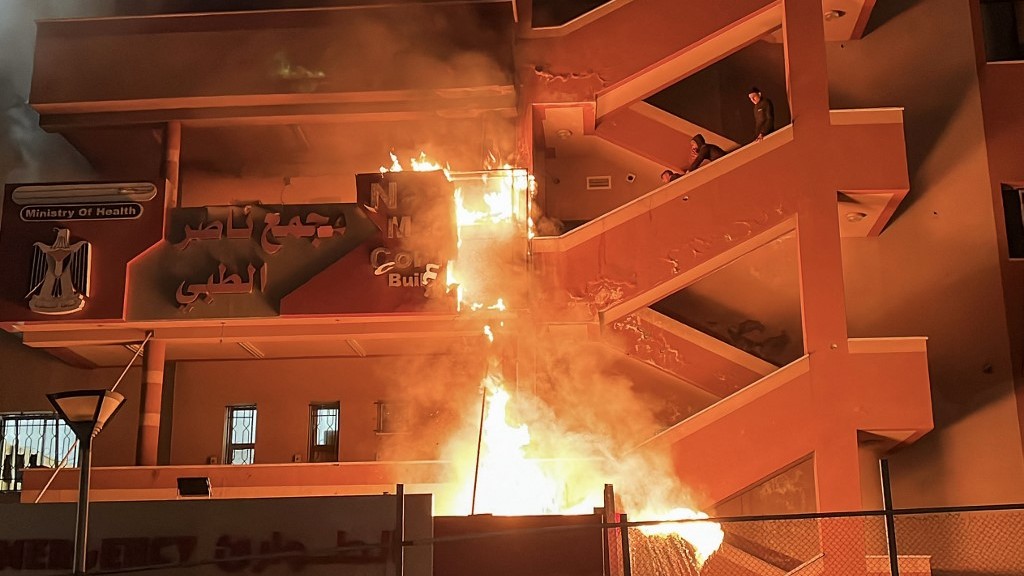 The attack destroyed a large section of the hospital, forcing the evacuation of an entire department, according to Gaza’s health ministry.
