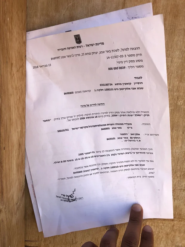 Residents of the Bedouin village of Umm al-Hiran in the Negev (Naqab) desert in southern Israel on Wednesday received eviction and demolition notices which were posted on their doors by Israeli authorities in the latest salvo in a years-long legal battle.