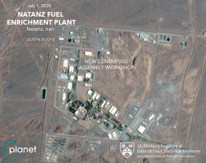 The satellite image shows the new centrifuge assembly workshop at Iran's Natanz Fuel Enrichment Plant, according to the Middlebury Institute of International Studies at Monterey (MIIS) (Reuters)