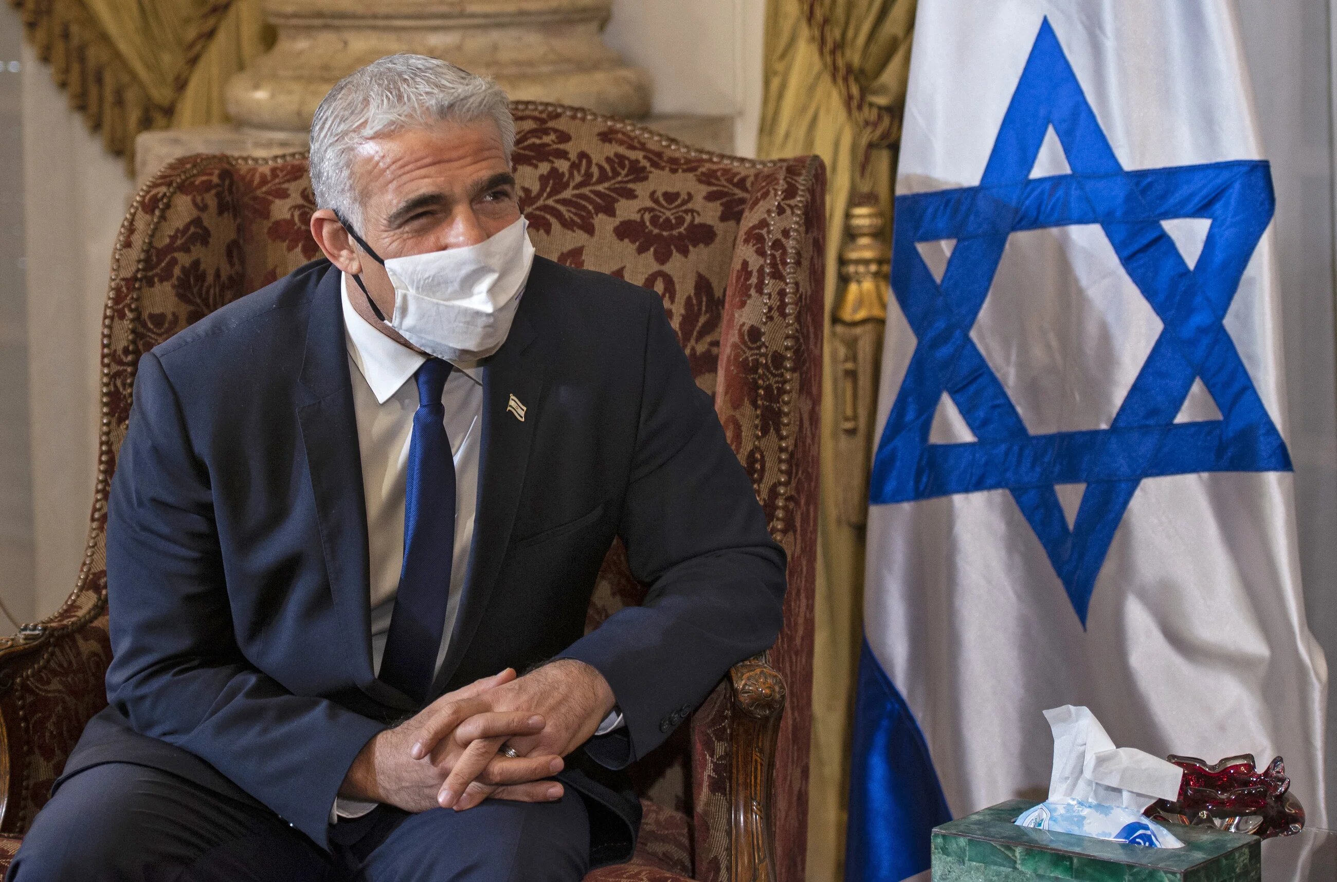 Israeli foreign minister and alternate prime minister Yair Lapid looks on during his meeting with Egypt's foreign minister at Tahrir Palace in Cairo, on 9 December 2021 (AFP)