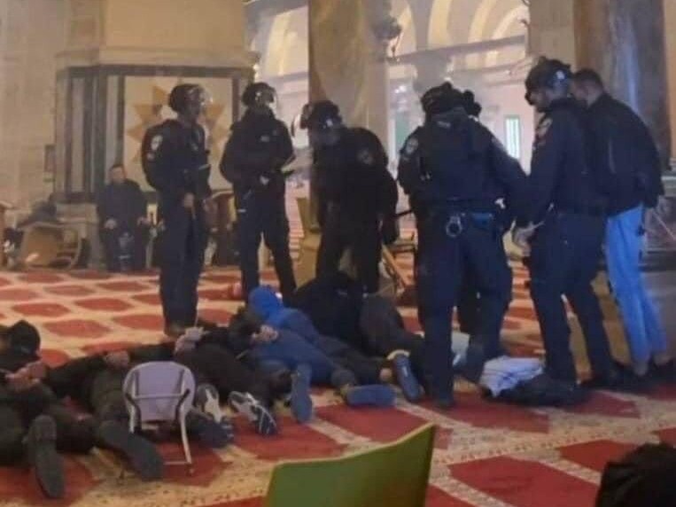 Israeli forces beat and detain Palestinians in al-Aqsa prayer hall