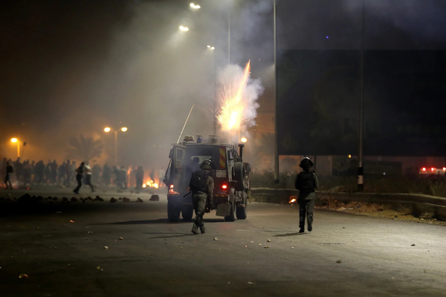 Israeli soldiers used gas canisters to disperse Palestinian demonstrators during protests in the occupied West Bank city of Ramallah (AFP/ Abbas Momani)