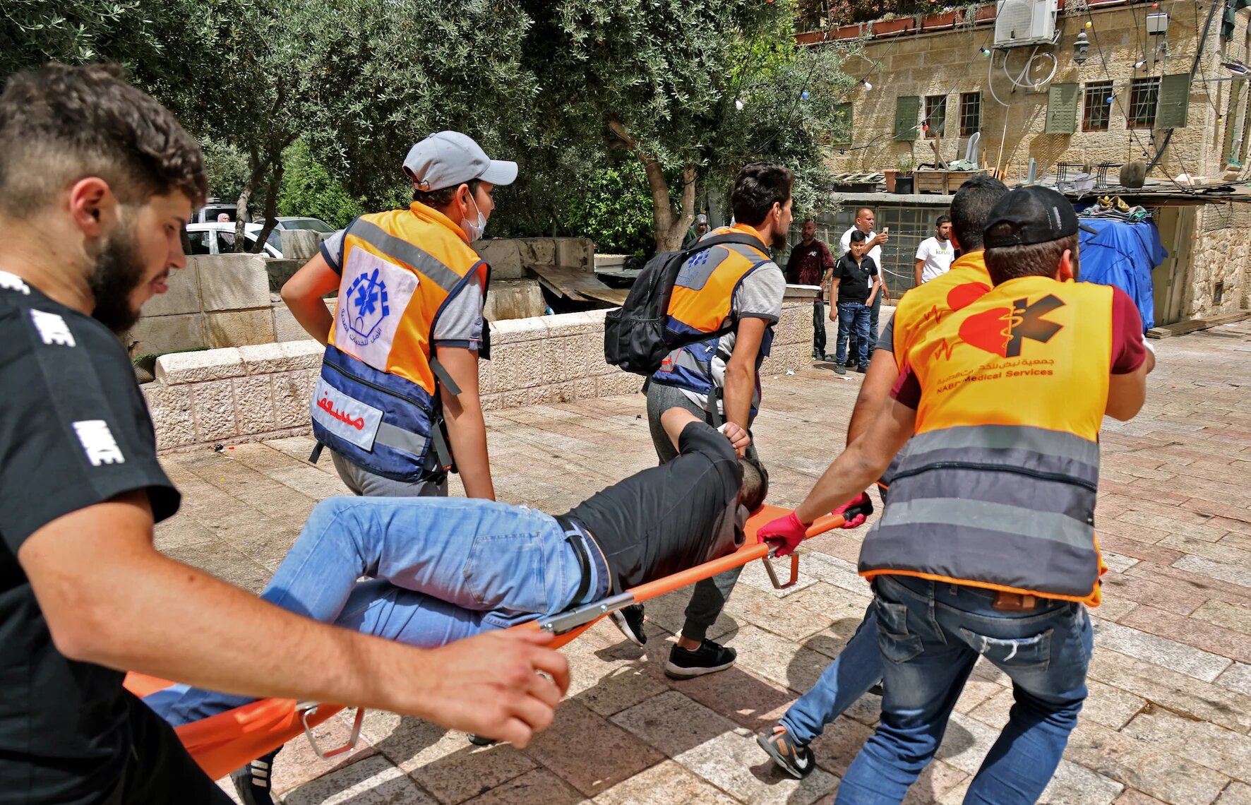 Palestinian medics have been evacuating wounded protesters while the Red Crescent has reported that medics were being denied access to al-Aqsa (AFP/Ahmad Gharabli)