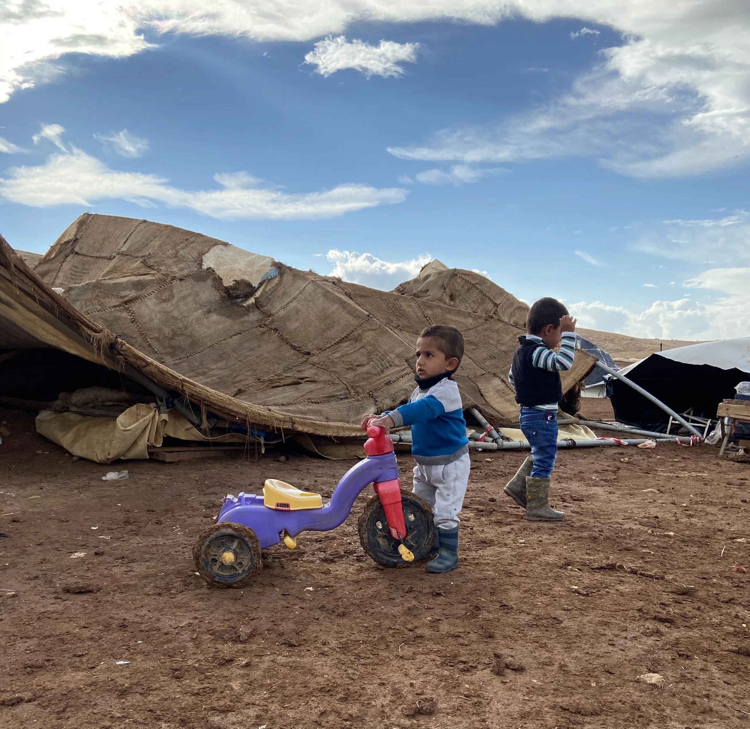 The child wailed as a cold wind blew through their makeshift tent, hastily erected the previous night to protect them from the rain.