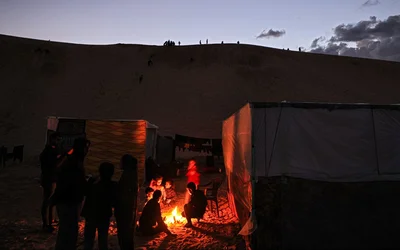 Truck drivers gather around a fire to keep warm, while Egyptian soldiers send one of their own off to buy groceries and snacks. Now and then, cheers and singing can be heard at the border crossing gate as Palestinians greet family members who have managed to flee Gaza.