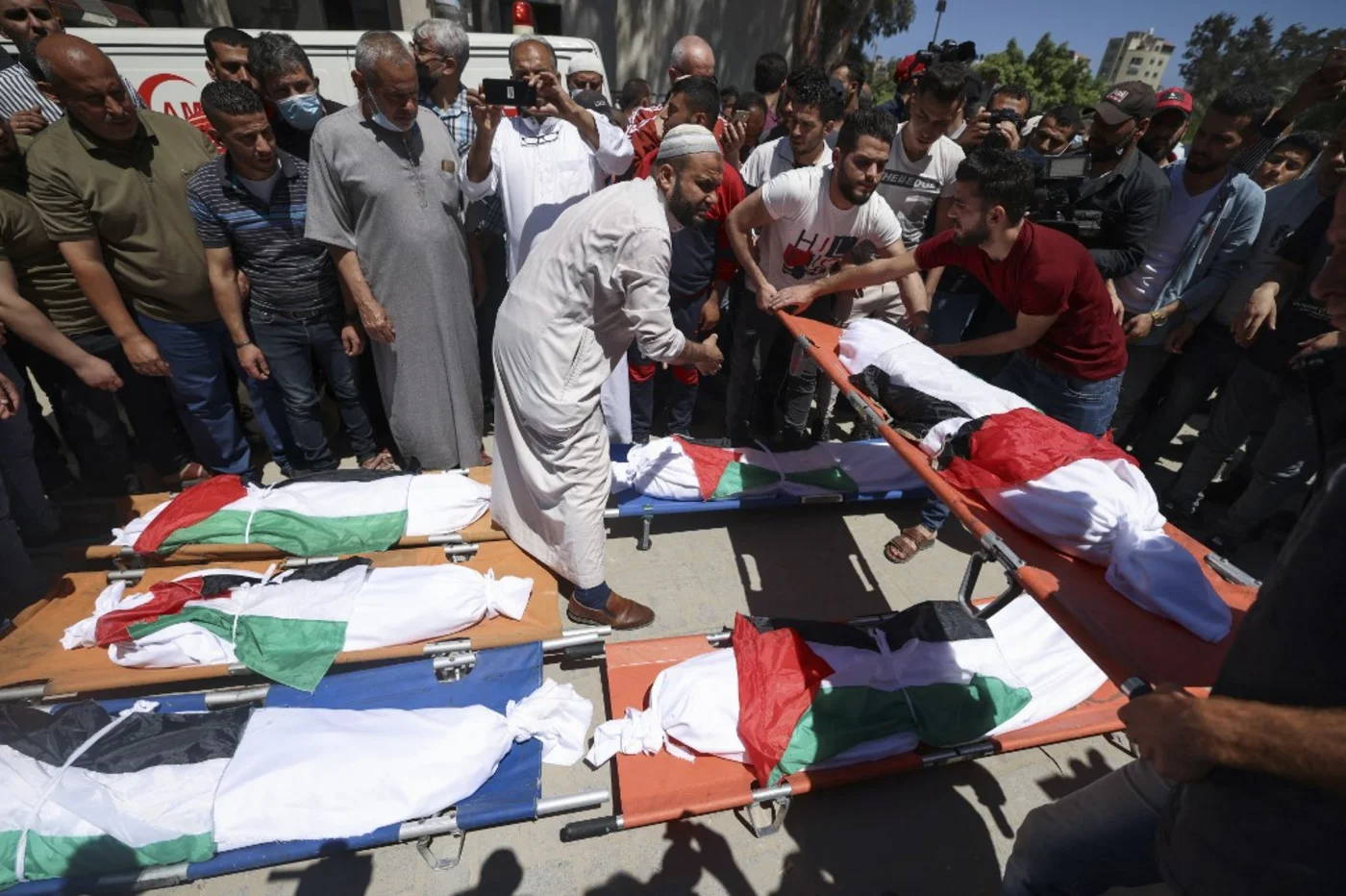 The funeral of the 10 members of the Abu Hatab family, who were killed on 15 May 2021 in Gaza by an Israel air strike (AFP)