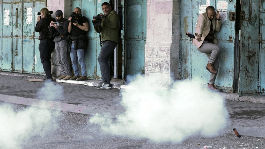 Israeli forces fired rubber-coated bullets at journalists covering confrontations in Hebron on 1 March 2022 (AFP)