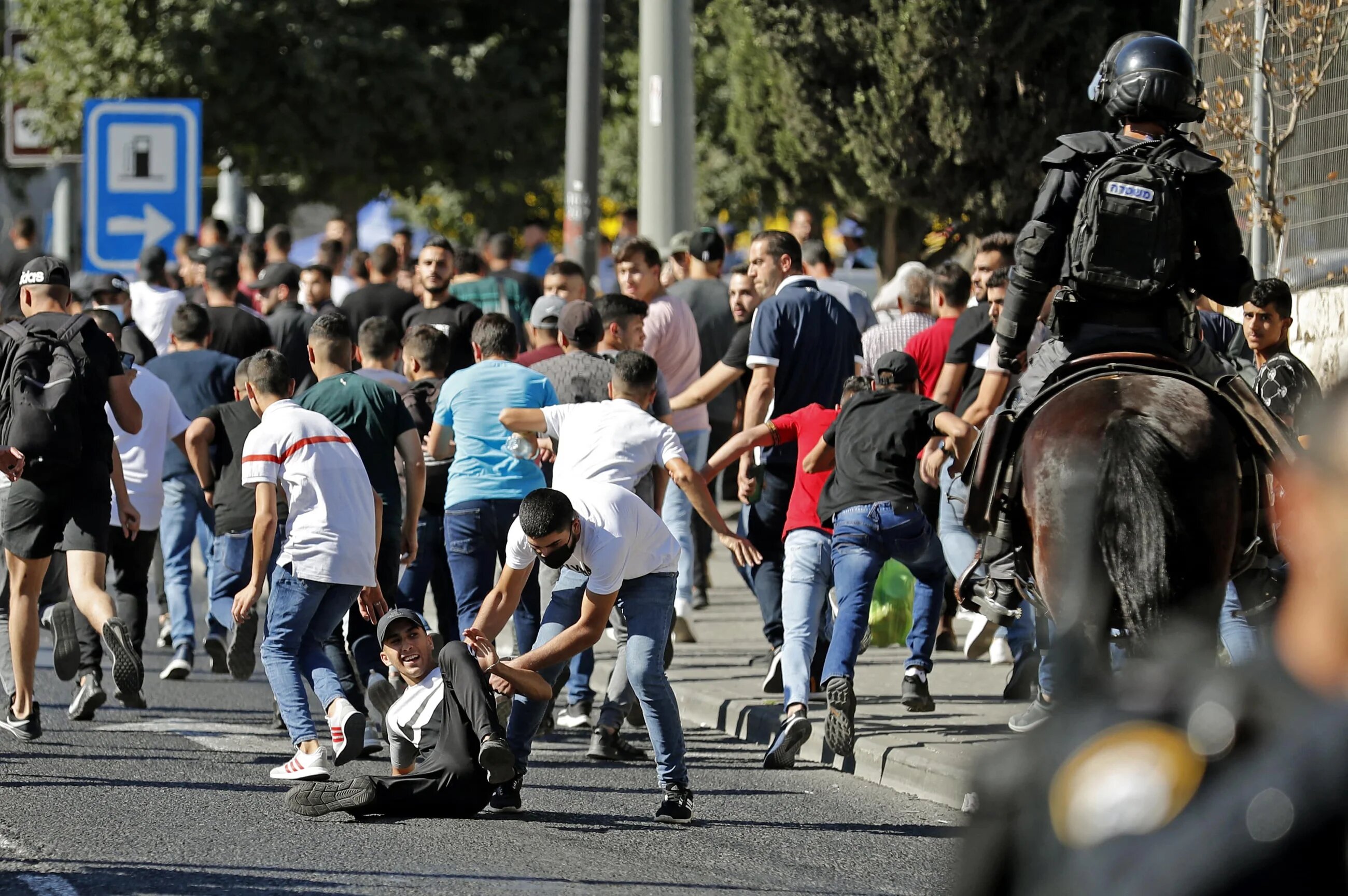 Having closed off certain roads and Damascus Gate, Israeli police arrested Palestinians in Jerusalem ahead of the march. Videos posted on Twitter showed Israeli officers beating a Palestinian on the steps by Damascus Gate.
