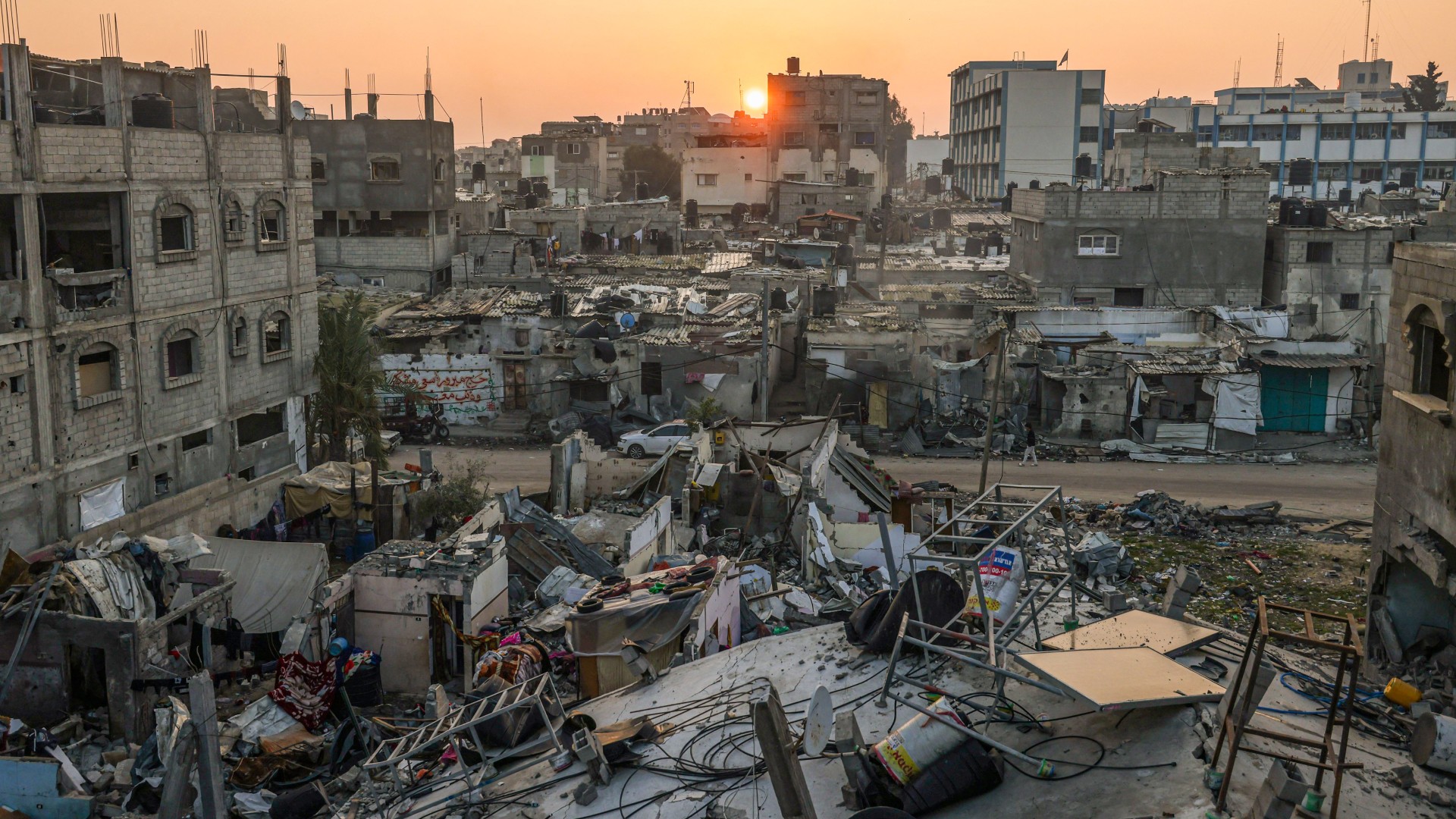 The sun rises above the Rafah refugee camp in the southern Gaza Strip on 1 January 2024 (AFP)