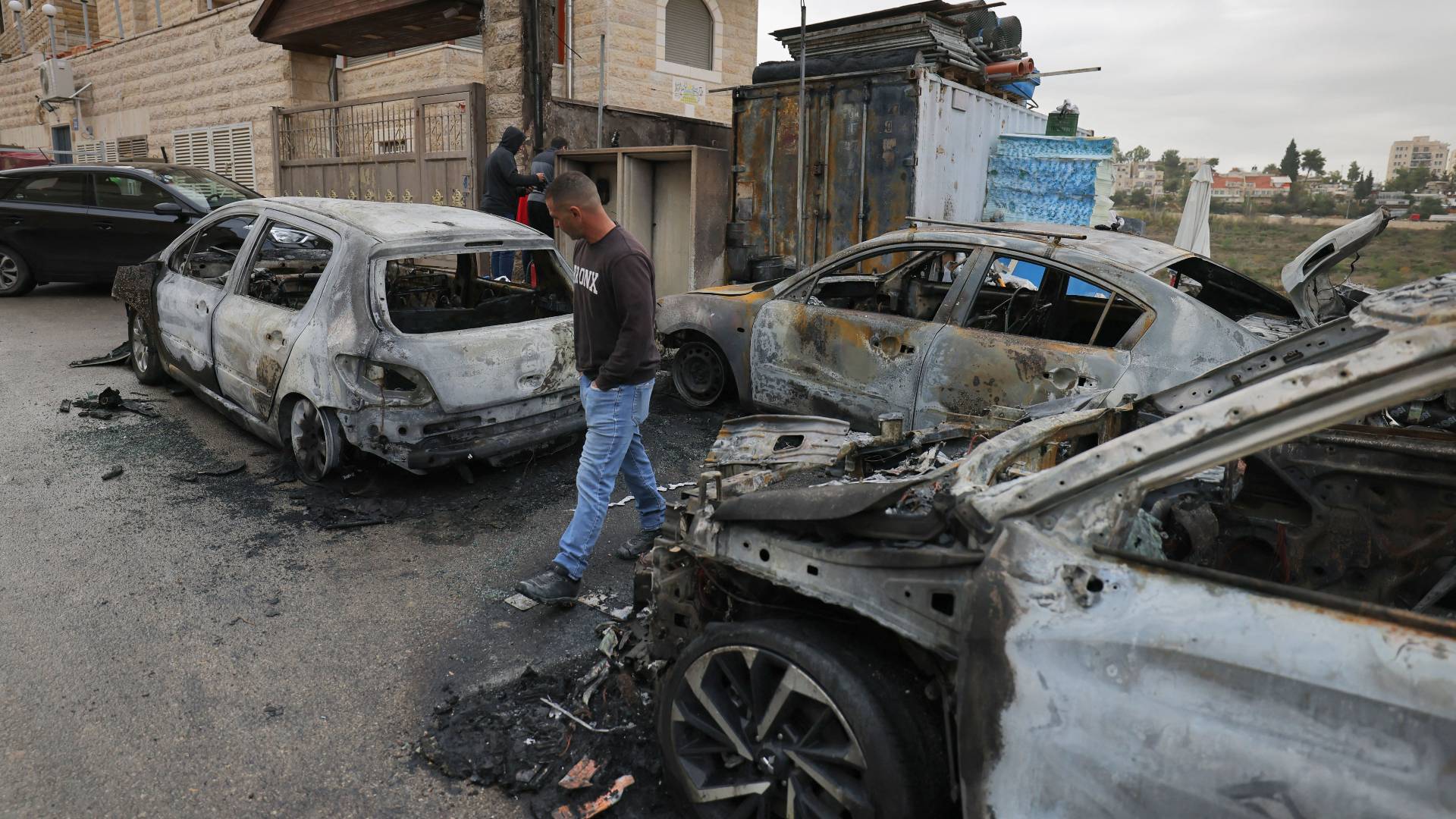 Several Palestinian cars were burned and their tyres slashed by a group of settlers in a string of attacks by a group known as "price tag".