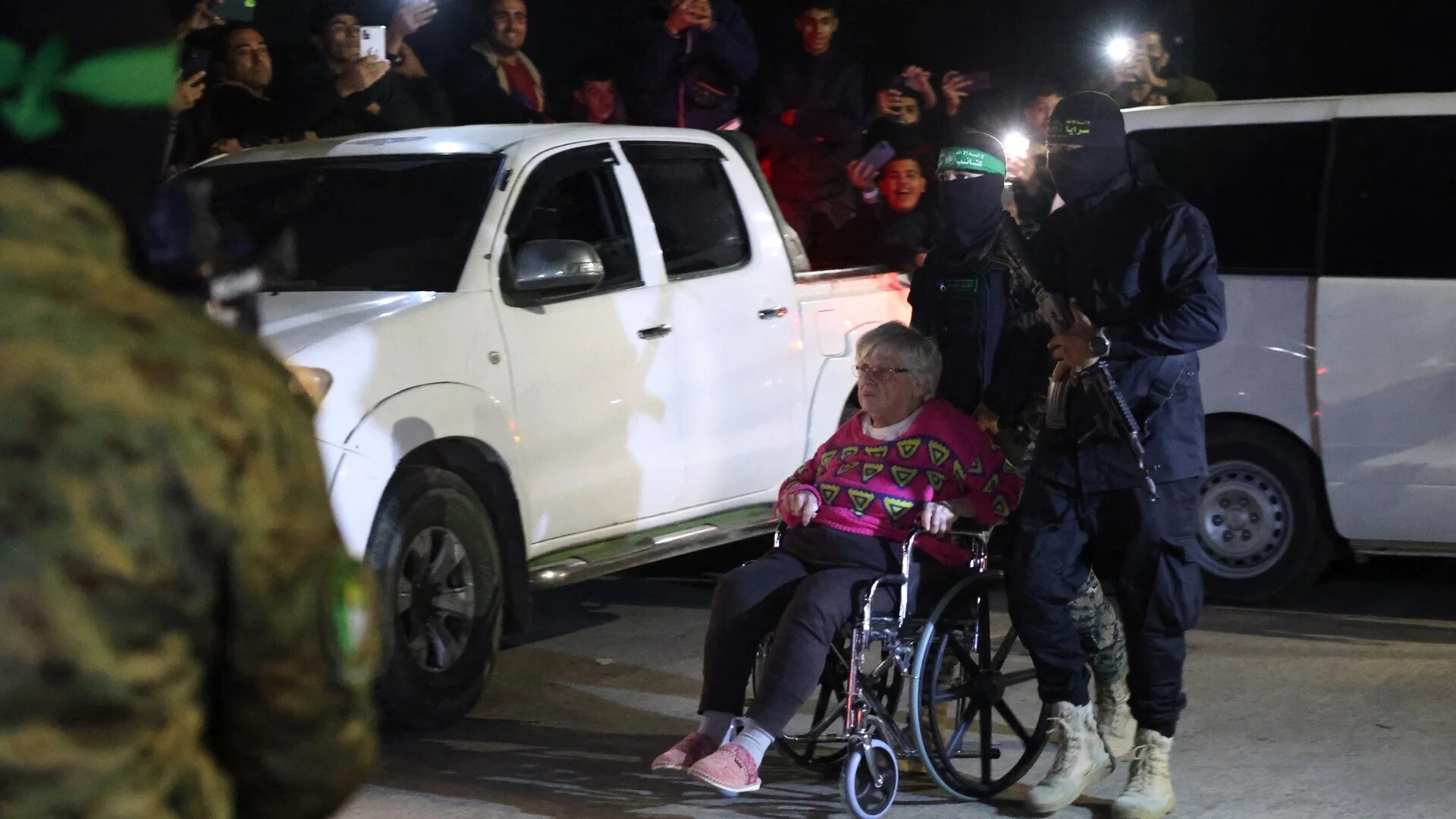 Images from Rafah near the Egyptian-Gaza border crossing captured the moment the Israeli captives were handed over to the Red Cross.