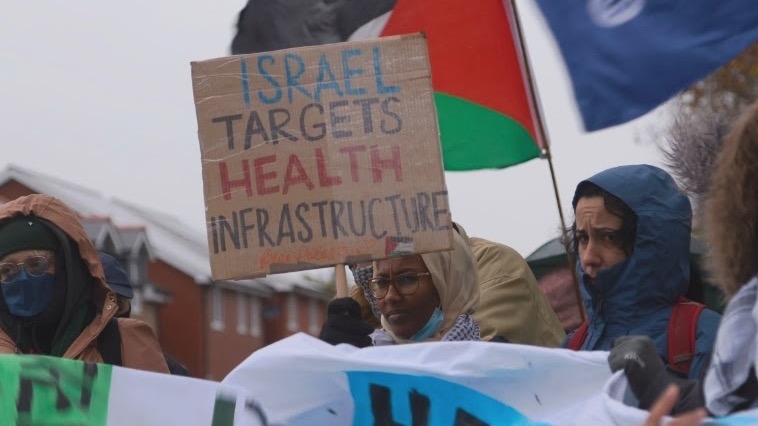 “The same UK government that has decimated the NHS and social care services through austerity is using that money to underwrite UK companies like Eaton Mission to arm the Israelis to commit its genocide.”