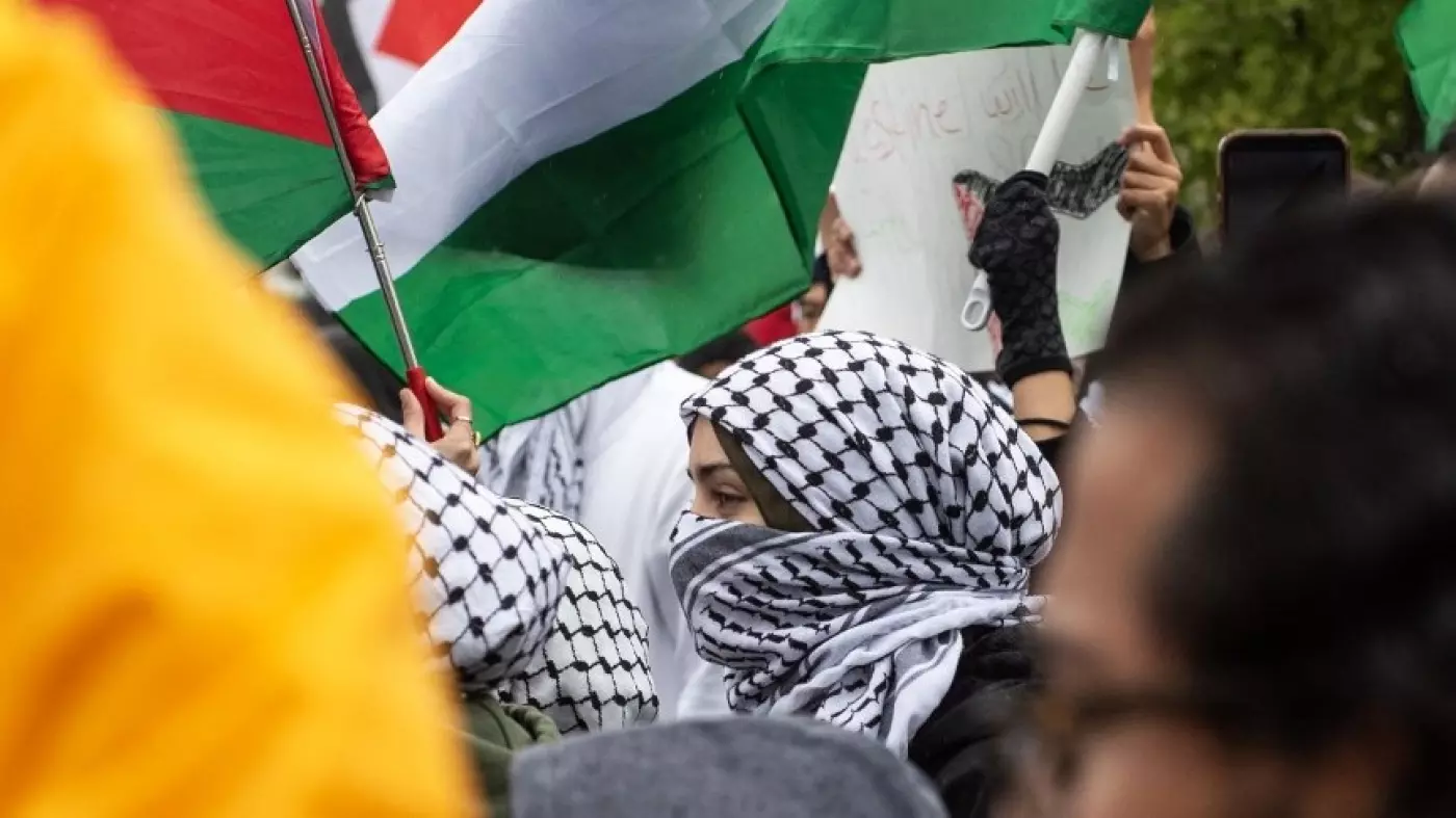 Last week, Aliyah was walking home from a protest wearing an abaya, a long black garment covering her body. She had a Palestinian flag painted on each of her cheeks.
