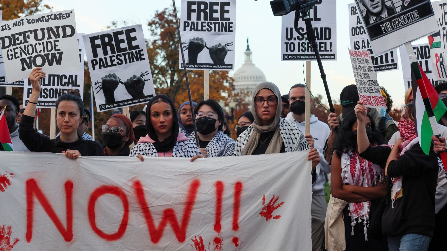 Israel's military campaign has displaced more than one million Palestinians and targeted civilian infrastructure. Hundreds of scholars have warned Israel may be committing genocide against the Palestinians.