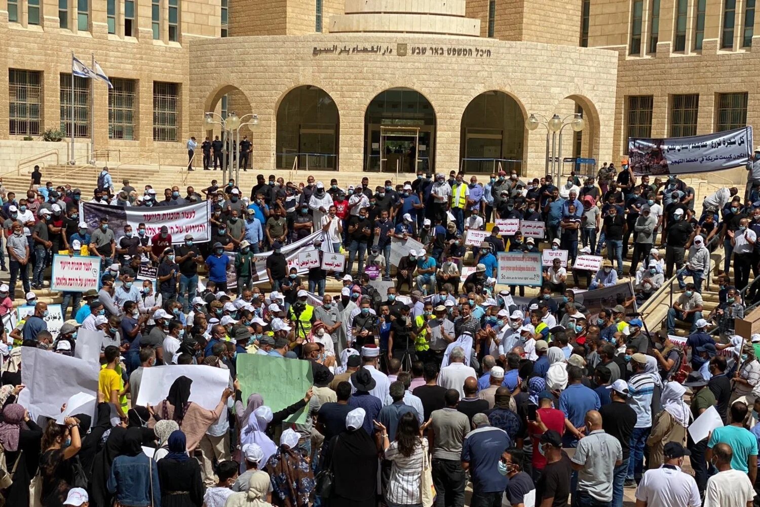 Hundreds of Palestinian citizens of Israel protested on Monday in the Negev region to denounce the Israeli government policy of house demolitions and evacuation orders in the village of Khirbet al-Watan.