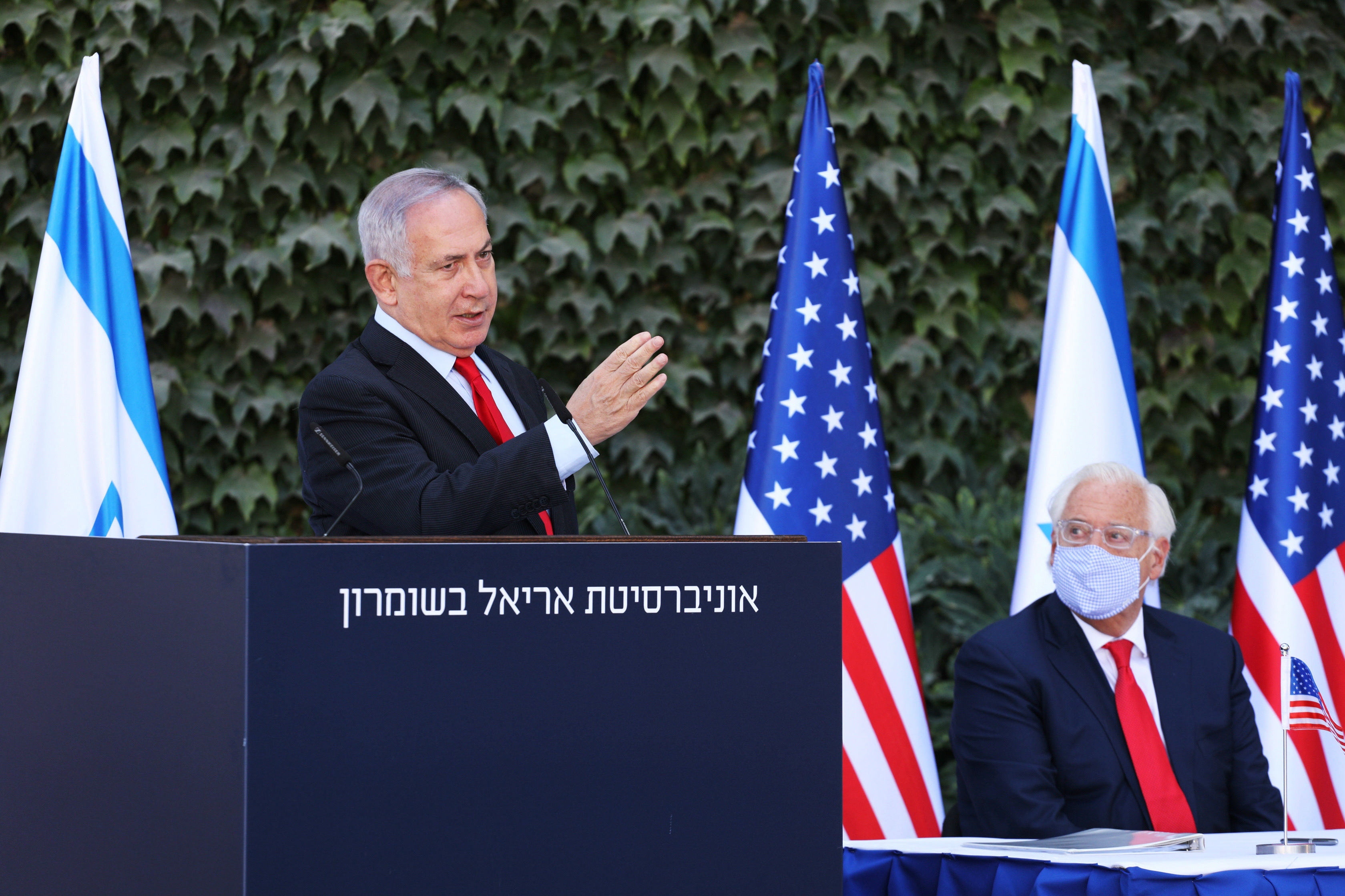 “The Trump vision... opens Judea and Samaria to academic, commercial and scientific engagement with the United States,” Netanyahu said at the ceremony, using biblical names for West Bank territory.