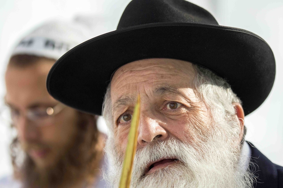 An ultra-Orthodox Jewish man inspects a Loulav, one of four plant species to be used during the celebration of Sukkot (AFP)
