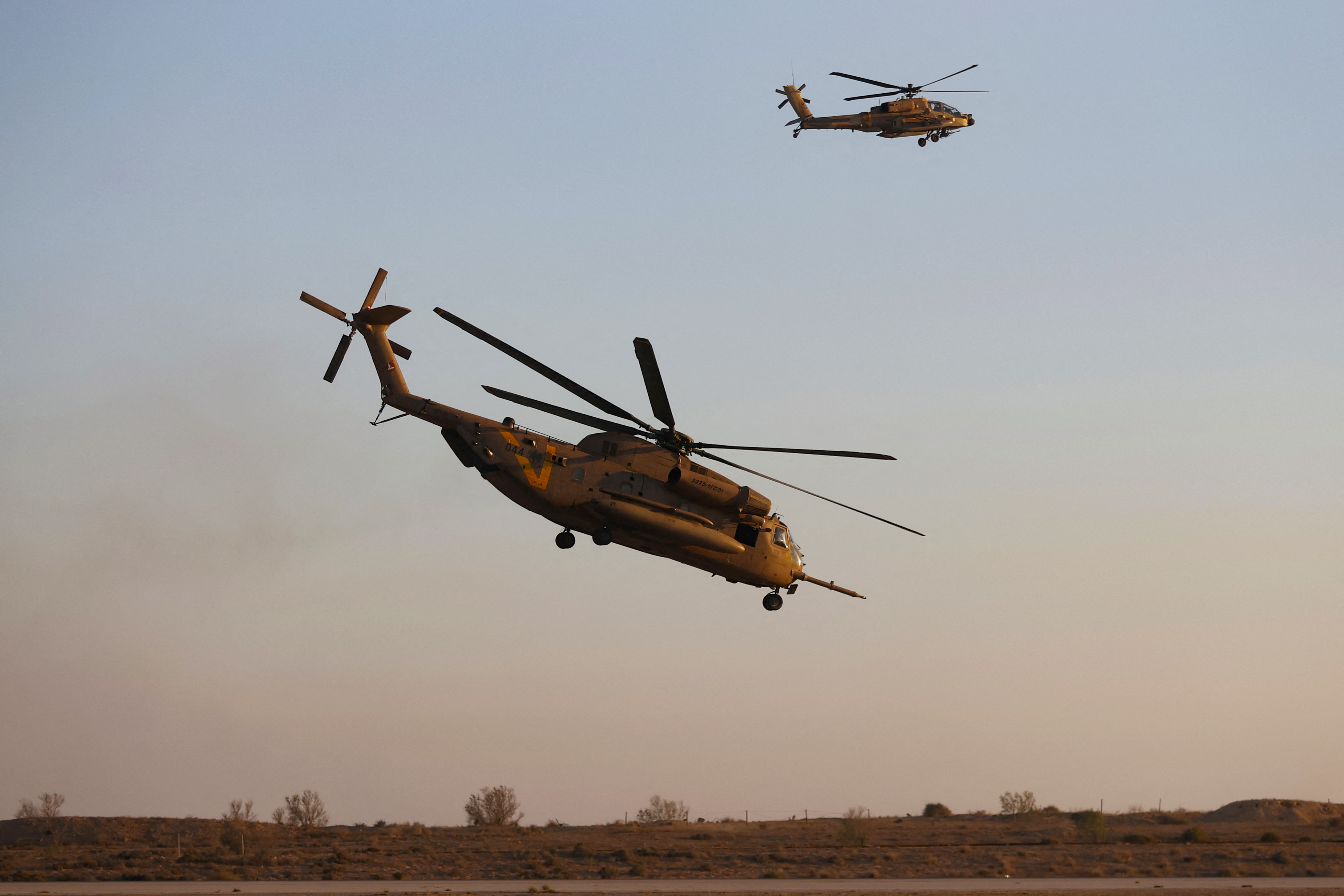 Israeli Sikorsky CH-53 Yasur 2025 helicopters perform manoeuvres during a graduation ceremony of Israeli Air Force pilots at the Hatzerim base in the Negev desert, on 24 June 2021 (AFP)
