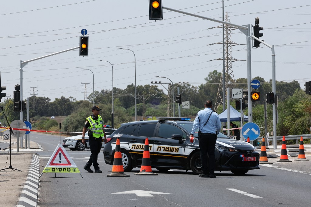 Israeli police deploy in a checkpoint in the southern Israeli kibbutz of Karmia on 5 August 2022 (AFP)