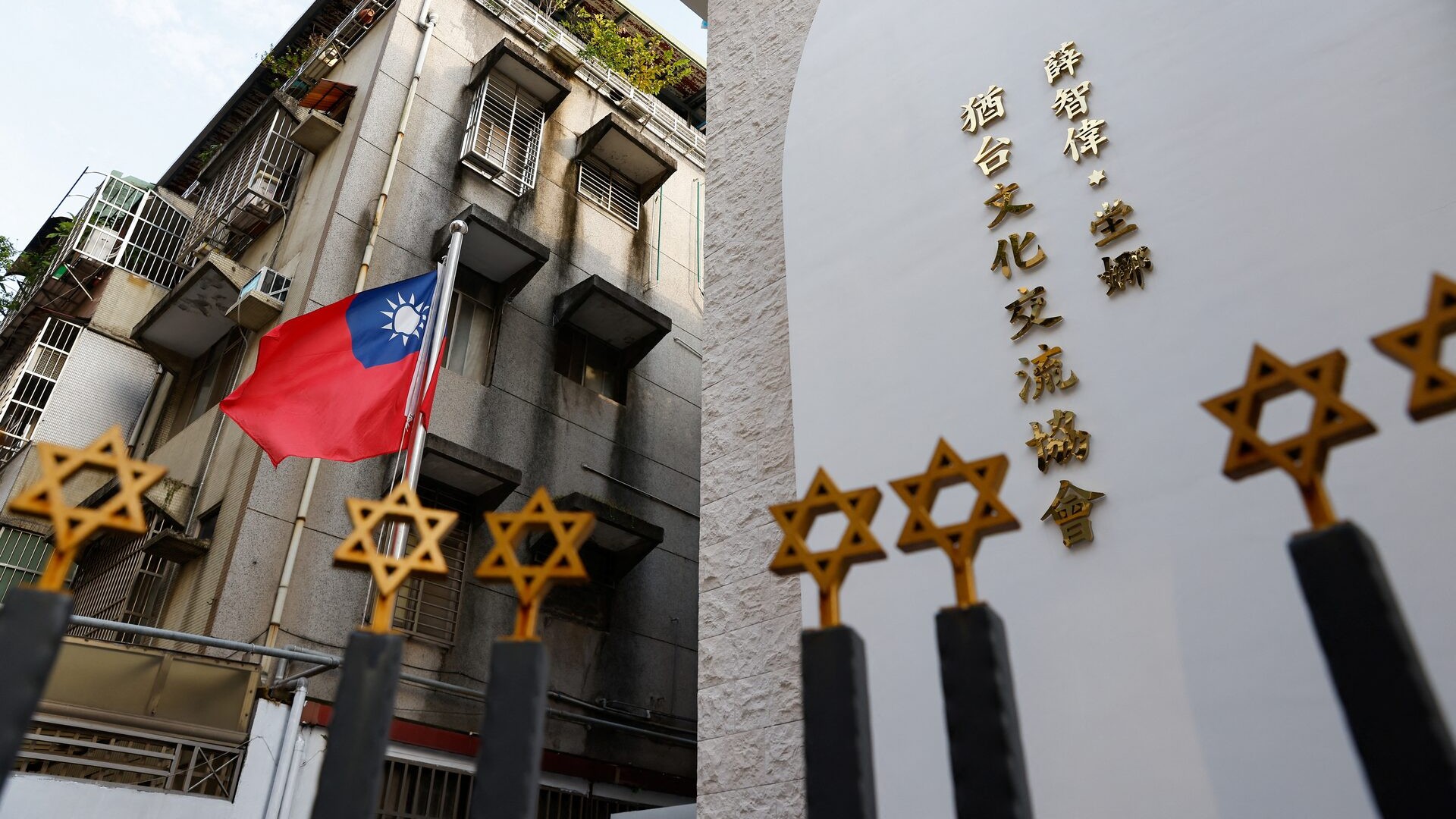 The Taiwanese flag flies at the Jeffrey D Schwartz Jewish Community Center of Taiwan in Taipei on 26 October 2023 (Reuters)