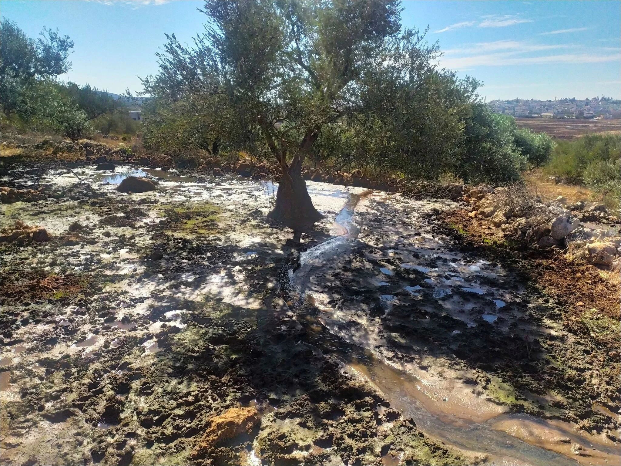 “About 30 olive trees are destroyed due to the sewage and can no longer produce,” he says.