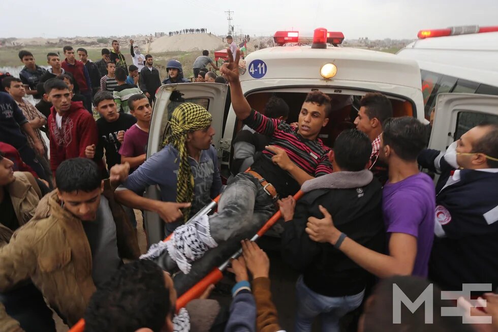 At least 38 Palestinian protesters were injured along the border, Middle East Eye correspondents said.
